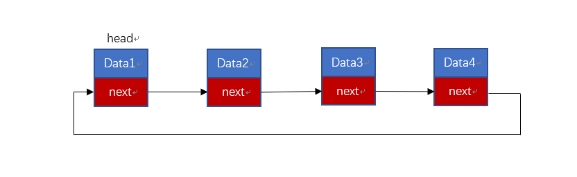 //data为存储的数据,next指针为指向下一个结点3. 循环单链表初始化