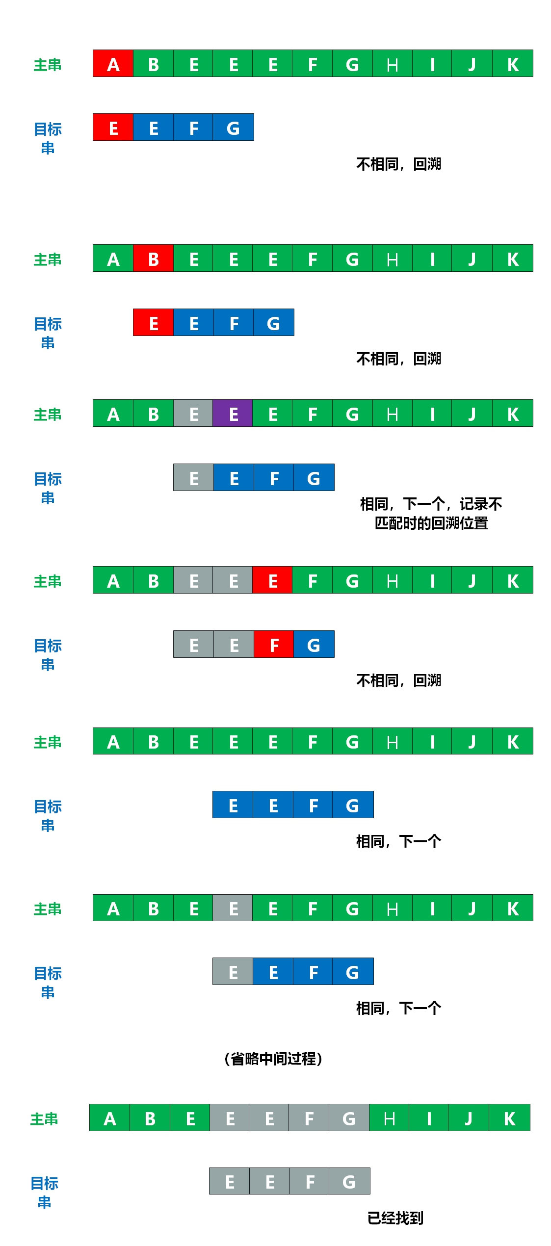 无脑回溯并不合理,比如下面这种情况中,如果让你进行回溯的话,你肯定不会直接回溯到下一位,这是因为你明白直接回溯到下一位会导致连第一位都不会匹配,就更别谈后面了