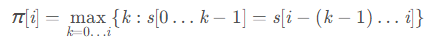 定义:前缀函数π(prefix function): π[i]代表子串s[0…i]与其后缀相等的最长真前缀。