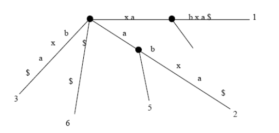 并不是所有的字符序列都有后缀树,例如xabxa(其后缀有xabxa,abxa,bxa,xa,a)xa为xabxa的前缀,为了解决此问题,通常在字符串末尾加上$符号,使得任何一个后缀都不为其他后缀的前缀。