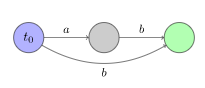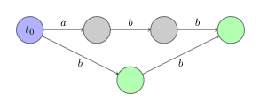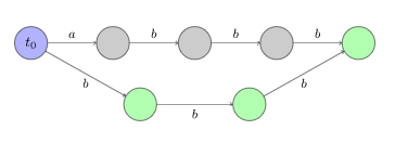 (2)我们用蓝色表示初始状态,用绿色表示终止状态。