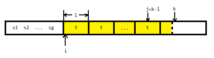 当前读入的字符是s[k],令j=k−∣t∣。