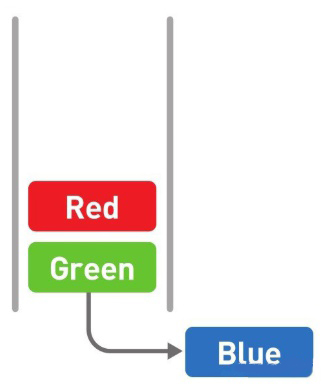 如上就是队列的概念图,现在队列中只有数据 Blue。往队列中添加数据时,数据被加在最上面。