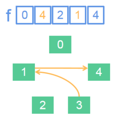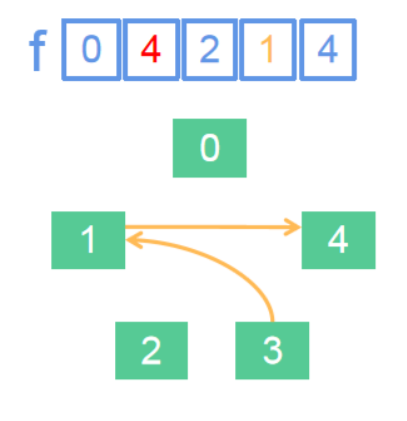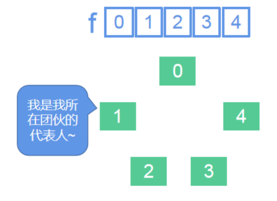 (箭头只是体现了f数组中“团伙成员”和“代表人”的关系,其实这个图是无向图)