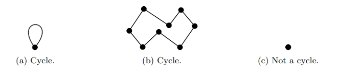 我们定义开放路径(open trial)为一条没有顶点遍历多次(所有顶点都不相同)的路径。 在路径P(v_0,v_n)中,顶点v_1, ... , v_{n-1}被称为P(v_0,v_n)的内部顶点。 如果除了v_0 = v_n外,其他所有的顶点都不相同,并且它包含至少一个边,则我们称其为一个环,也即是闭合路径(closed trail)的定义。