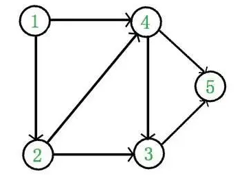 于是,得到拓扑排序后的结果是 { 1, 2, 4, 3, 5 }。