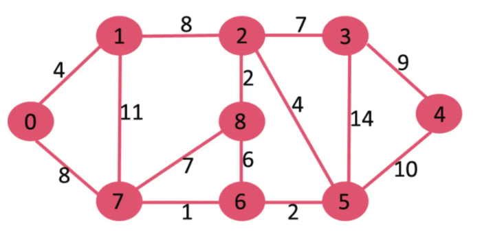![]() | 为原始的加权连通图。每条边一侧的数字代表其权值。 | - | - | - |