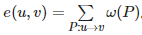e(u,v)表示u到v的每一条路径P上的ω(P)值之和,即![]()