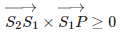求凸壳时,一旦发现即将进栈的点(P)和栈顶的两个点(S1,S2,其中S1为栈顶)行进的方向向右旋转,即叉积小于0: