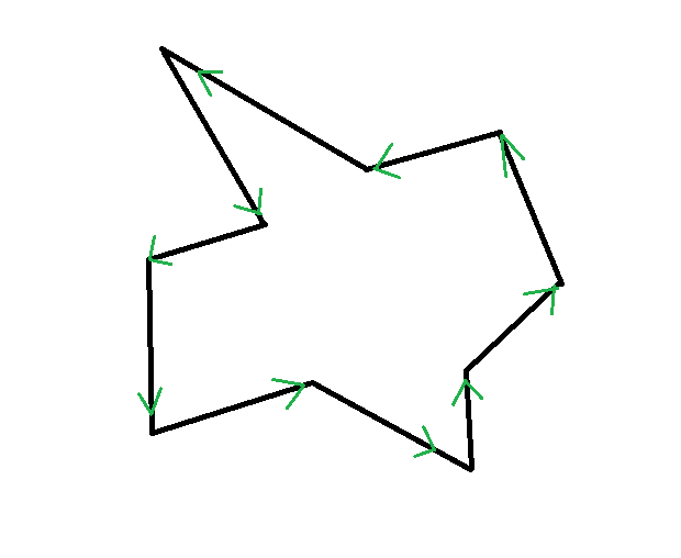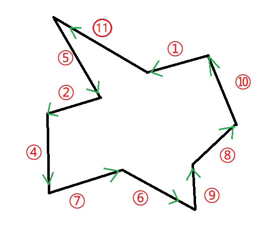 如果半平面交是一个凸 n 边形,最后在交点数组里会得到 n 个点。我们再把它们首尾相连,就是一个统一方向(顺或逆时针)的 n 多边形。