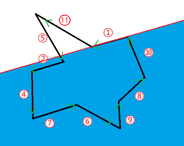 在计算几何中用向量表示,整个题统一以向量的左侧或右侧为半平面。