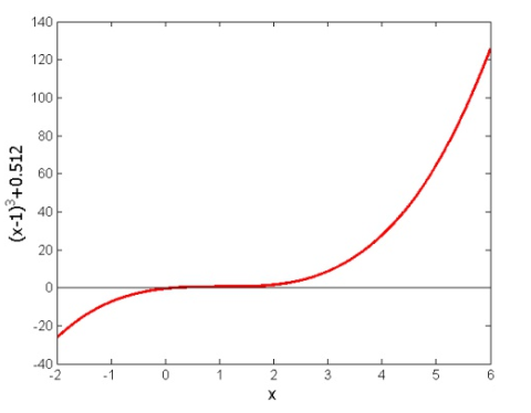 如果选择的初始猜测根的接近方程f(x)=0中函数f(x)的拐点 ,Newton-Raphson方法可能开始偏离根。 然后,它可能会又收敛回到根。例如