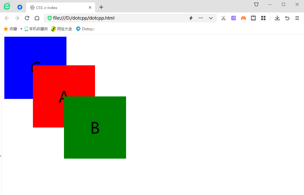 <div id="blue" style="background-color: blue;z-index: -1;">C</div>