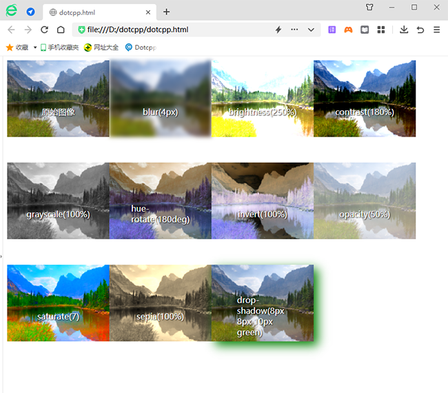 | sepia(%) | 将图像转换为棕褐色,默认值为 0%,表示原始图像;100% 表示图像完全变成棕褐色,不允许使用负值 |