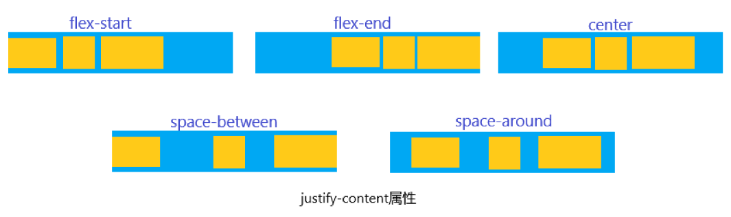 | justify-content | 设置弹性盒子中元素在主轴(横轴)方向上的对齐方式 |