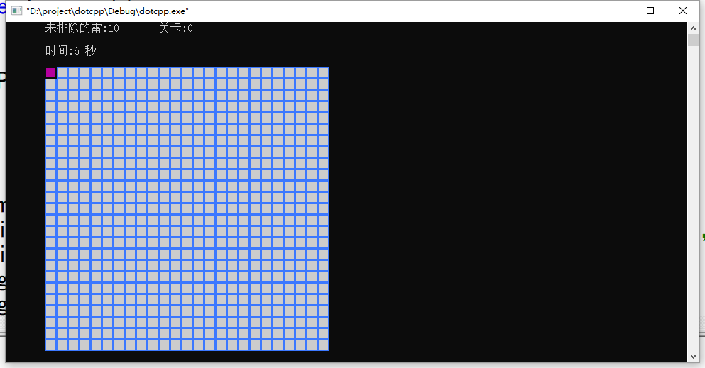 }这个函数在第一次按下k的时候调用,输入值为光标的位置。在生成雷的时候,如果与之前的雷或者光标重合,那么会重新生成一个雷,这样做可以避免直接失败。