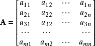 由 m × n 个数aij排成的m行n列的数表称为m行n列的矩阵,简称m × n矩阵。记作: