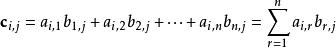 两个矩阵的乘法仅当第一个矩阵A的列数和另一个矩阵B的行数相等时才能定义。如A是m×n矩阵和B是n×p矩阵,它们的乘积C是一个m×p矩阵 ,它的一个元素: