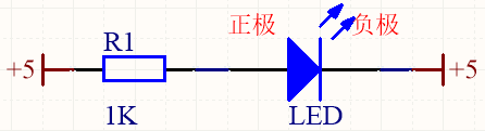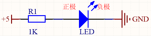 在电子电路中,我们都是采用发光二极管(LED)来发挥它在单片机应用中的作用,LED引脚有正负极之分,接反则不亮。在单片机原理图中,我们习惯用“丁”字型图标加注释“+5”来表示此处的电压有5V,用长短不一样的四杠直线的图标来表示此处的电压为0V,又或者说此处接地,此图标也可加标注“GND”来表示。