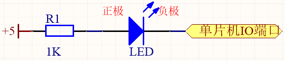 而通过此电路接法: 5V→电阻→LED正极→LED负极→单片机IO端口 就可以控制LED的亮灭了。在《手把手教你学51单片机》文档的2.3节有详细讲解。