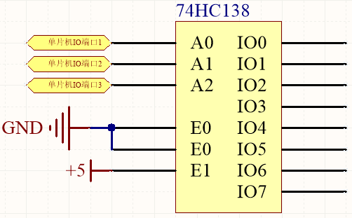 首先有三个引脚E0,E0,E1需要固定给它默认的电平它才能正常工作,俗称使能器件。