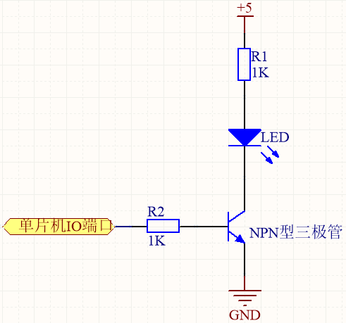 同理,右图使用的是NPN型三极管,那么单片机IO端口输出高电平时点亮LED,输出低电平时点不亮LED。