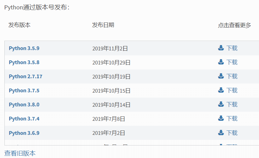 Python至问世以来经历了多个版本,大家可以在Python官网中查看。网址为:https://www.python.org/downloads/。