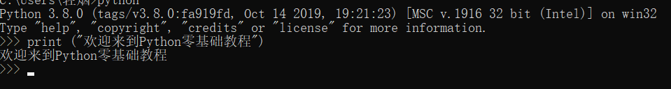7) 这样显示安装成功并在cmd中运行了python,我们在cmd中写一个简单的语句。