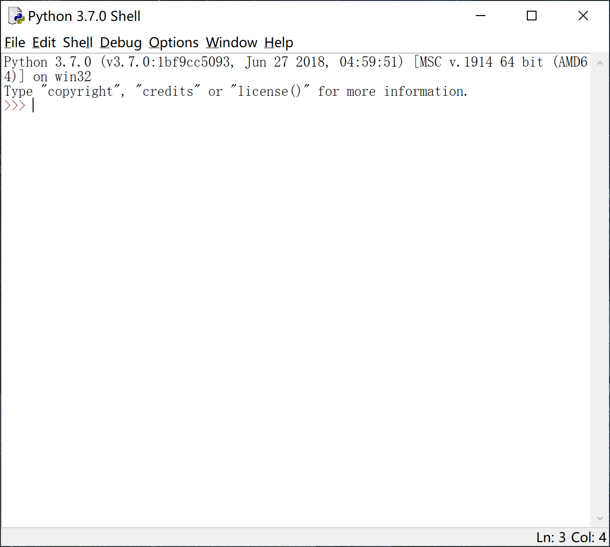 我们可以看到‘>>>’这个符号,我们可以在他后面进行输入指令,首先我们来输入一条简单的指令看一下效果。