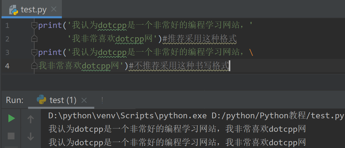 如果超过,建议用小括号“()”将多行内容连接起来,而不推荐使用反斜杠‘\’进行连接。