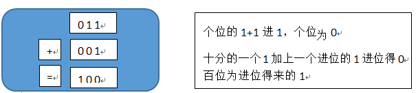 二进制整数比较简单,由计算机世界最重要的‘0’和‘1’组成,它的进位规则‘逢二进一’,即101+001=110
