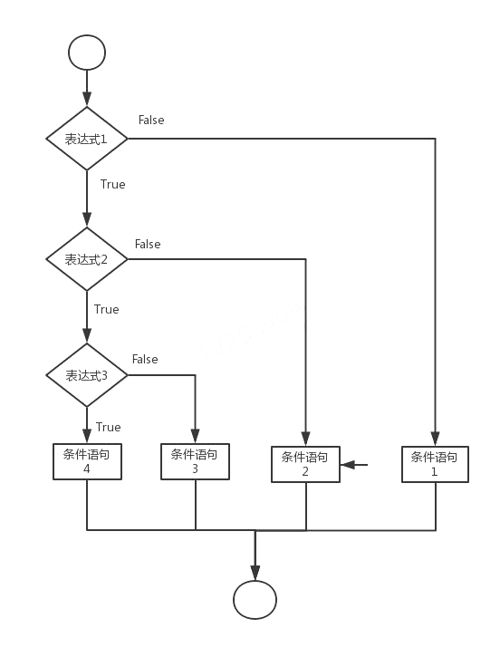 if 表达式1: if 表达式2: if 表达式3: 条件语句3 条件语句2 条件语句1 else: 条件语句4