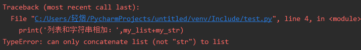 错误提示为:只能将列表(不是“str”)连接到列表,因此在‘+’操作的时候要使用相同类型进行相加。
