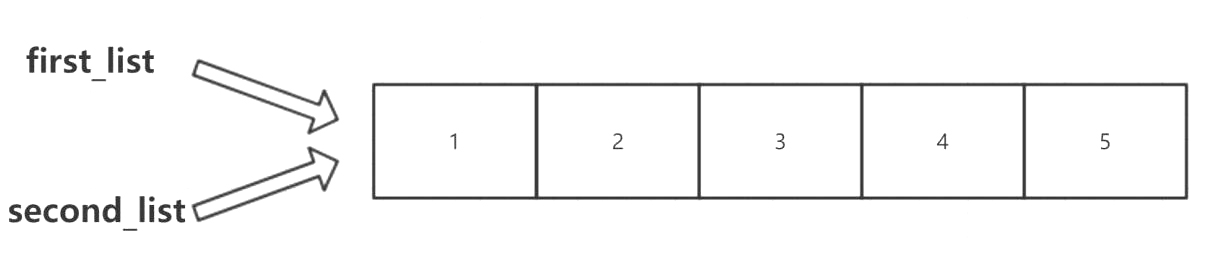 print(id(first_list), id(second_list)) # 通过访问id可以发现此时两个列表地址是相同的输出结果为: