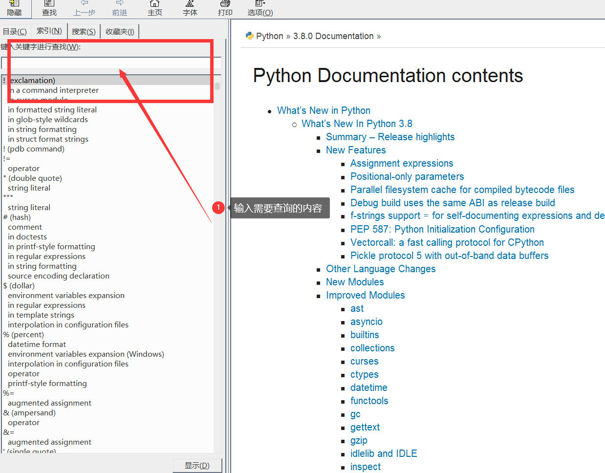 上面都是这些函数的简单说明,如果需要详细的了解可以在自己的IDLE中去查询它的用法,查询方式,进入IDLE,中文输入法输入help并回车进入下页面。