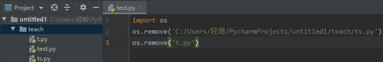 import os os.remove(r'C:\Users\轻烟\PycharmProjects\untitled1\venv\tst.py')