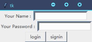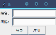 我们首先在窗口中放置了三个容器,从上到下依次存放姓名、密码和按钮,然后再姓名后面放一个Entry控件,供我们输入姓名,在密码对应的后面放一个Enrty控件来输入密码,最后在下面放两个按钮分别提供登录和注册,最后我们把他们的位置放在左右一一对应。