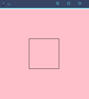 import tkinter class TK: def __init__(self): self.window = tkinter.Tk() self.canvas = tkinter.Canvas(self.window,width = 300,height = 300,bg = 'pink') self.canvas.create_rectangle(100,100,200,200) self.canvas.pack() tkinter.mainloop() m = TK()