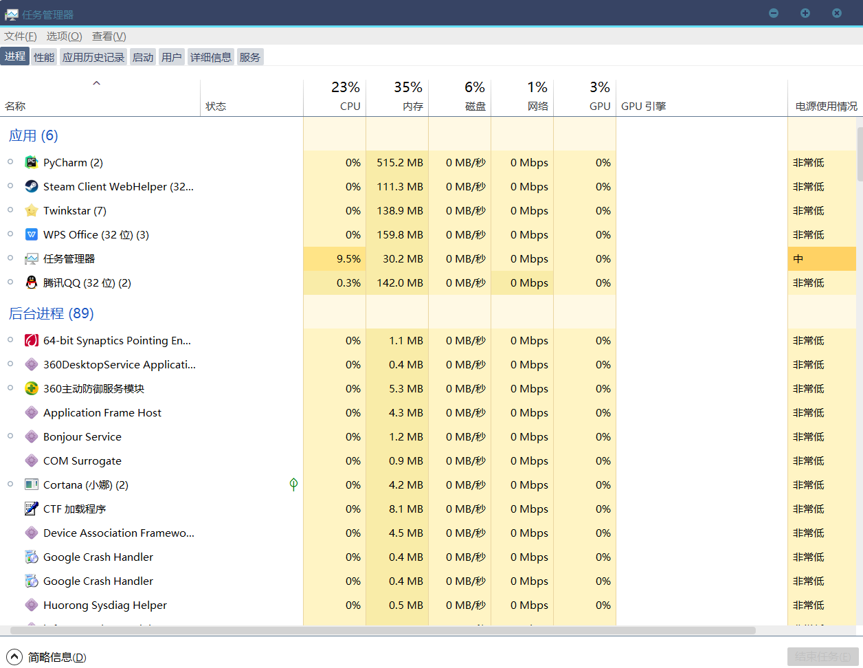 我们可以发现计算机运行的不仅仅有我们打开的应用,还有很多个后台运行的系统进程,进程就是我们电脑中已经运行的程序的实体,看下图: