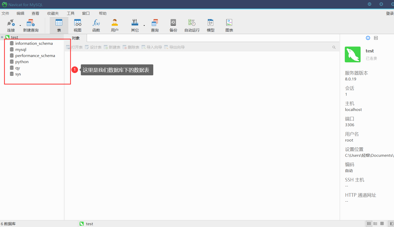 我们可以看到当前的数据库和上一节我们在MySQL命令行中看到的是一样的,我们可以在这个界面直接进行操作。