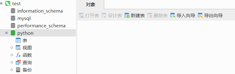 我们通过右键test新建数据库,也可以直接使用当前存在的数据库。