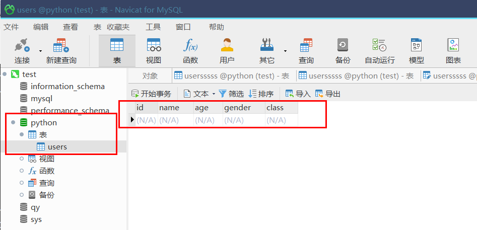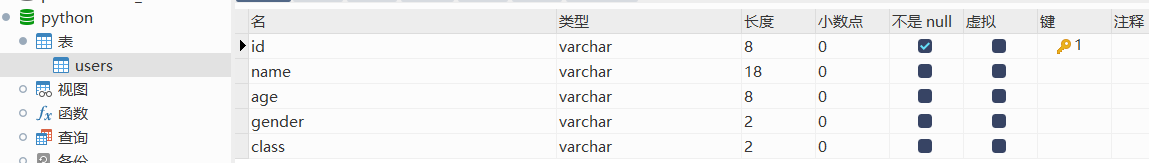 con.close()我们运行之后可以在我们的数据库中刷新一下来查看当前表。