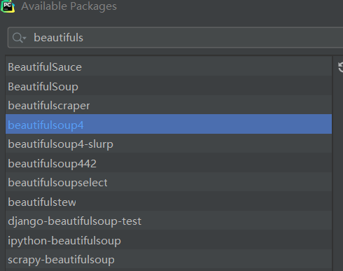 BeautifulSoup最新版为BeautifulSoup4,我们可以通过pip来安装,也可以在Pycharm中直接找到进行下载。