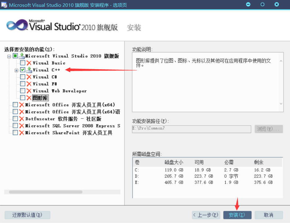 5) 选择安装的功能,可以根据实际情况进行选择性安装。