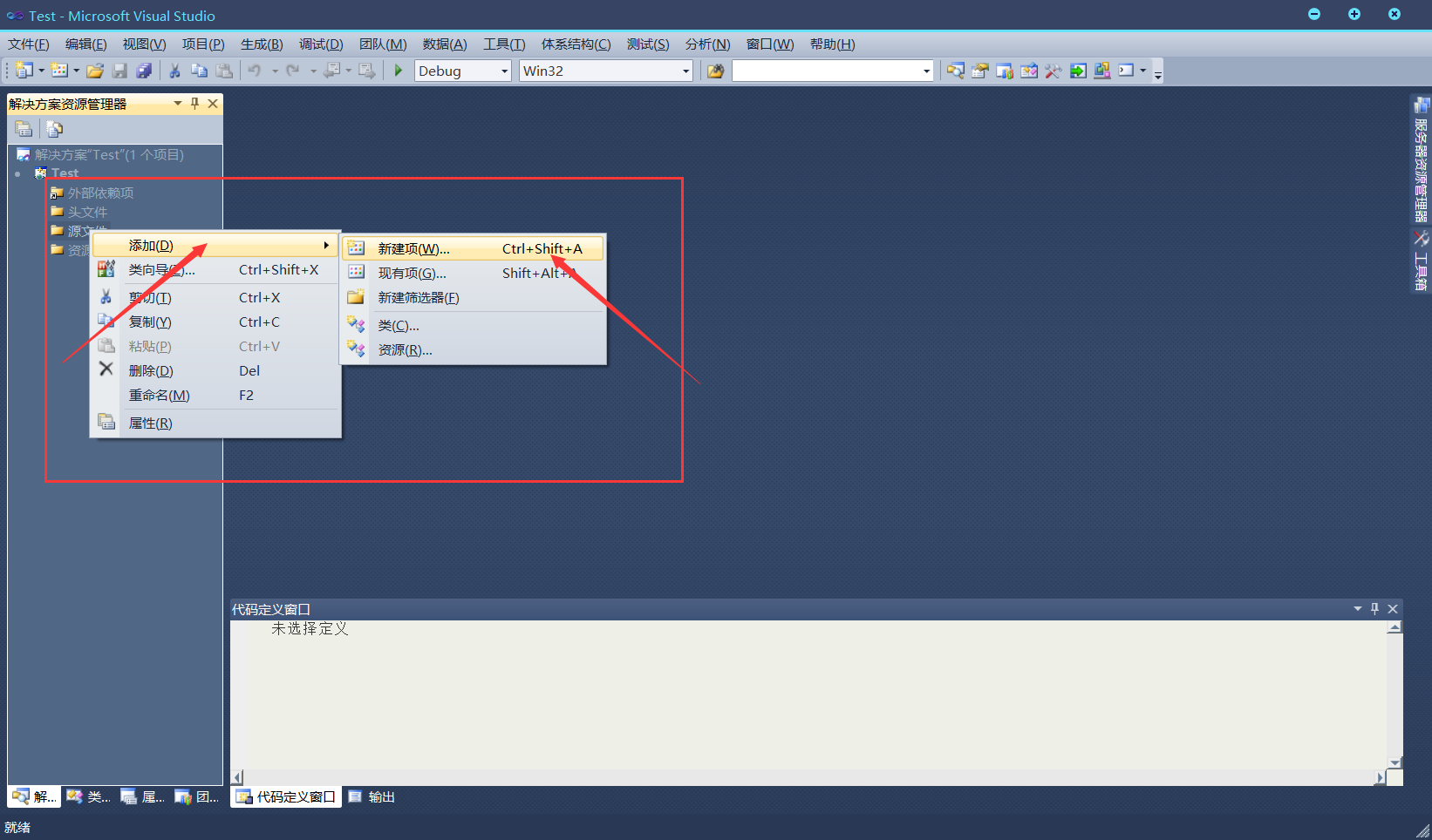1) 创建文件的方式为点击左上角文件->新建->文件,或者直接Ctrl+N,我们在使用这种大型开发工具的时候,需要选择项目工程的方式来进行使用,选择项目选项。