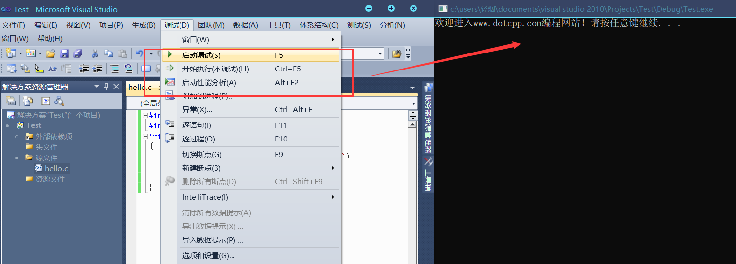 也可以直接通过Ctrl+F5直接进行编译调试并启动程序。