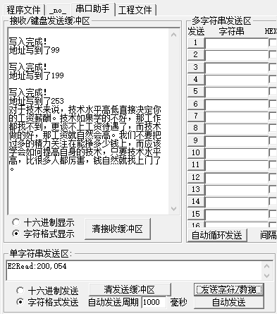 我们把宋老师的一段语录经过修改凑齐127个汉字和标点符号,把这些内容全部写进EEPROM中。