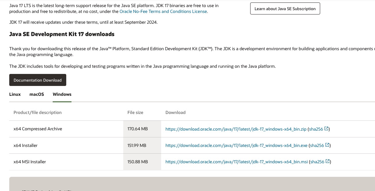 与其他语言一样,学习和使用Java语言需要提前准备下载和安装编译器,即JDK,JDK是英文Java Development Kit的缩写,即Java开发工具,它包含了支持Java编译运行的一切环境,下面我们开始到官方下载,地址是:https://www.oracle.com/java/technologies/downloads/
