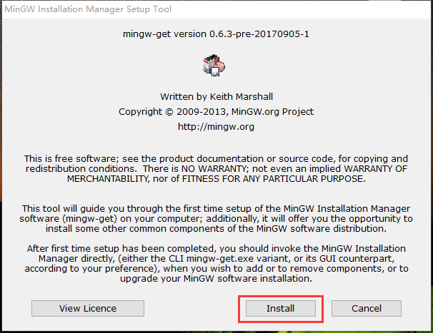 第一步先安装,依旧是在各编译器(编程软件)下载集合找到MinGW下载,得到MinGW的安装文件 mingw-get-setup.exe