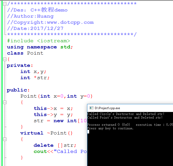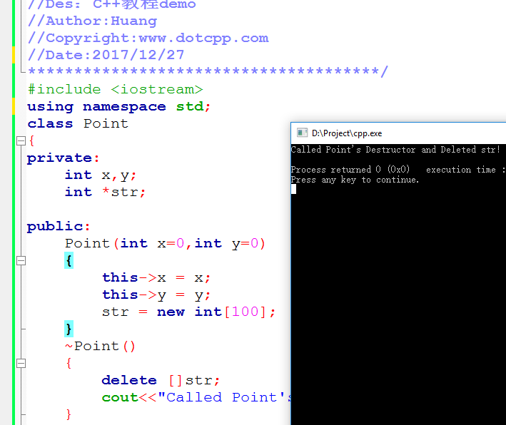 cout<<"Called Point's Destructor and Deleted str!"<<endl;